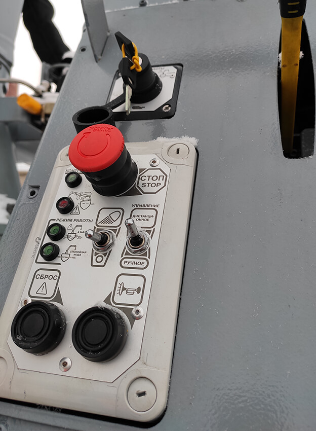 - пульт дистанционного управления специально спроектирован для удобной эксплуатации в экстремальных условиях (температура окружающей среды до минус 50 ºС, осадки в виде снега и дождя, морской туман, темное время суток, механические удары), а также позволяет оператору работать в теплых рукавицах;